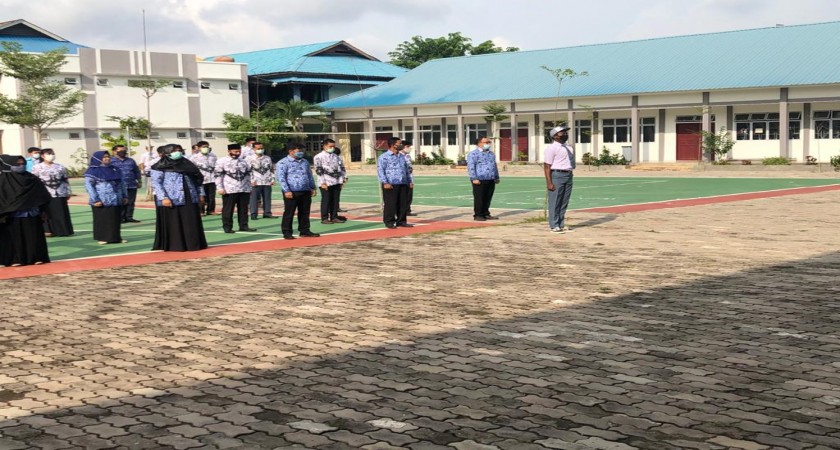 Upacara hari rabu tanggal 28 oktober 2020 di SMA Negeri 8 Batam yang diikuti oleh seluruh guru, staf dan wakil kepala sekolah dan warga SMAN 8 batam yang tetap memperhatikan protokol kesehatan.